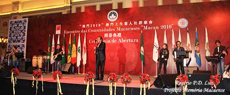 O último Governador português de Macau, Vasco da Rocha Vieira, a discursar no palco, num ambiente em que se encontravam o actual Chefe do Executivo, Chui San On, e o anterior, Edmund Ho, além de autoridades da RPC, fez-me por momentos recordar o dia de transição em Macau. Depois, toda a boa vontade e amabibilidade manifestada pelo Chefe do Executivo, no seu discurso, foi demais! Emocionei-me, mas tive que manter-me firme, pois estava a filmar todas estas cenas que tanto me fizeram voltar ao ano de 1999. Não estive em Macau na ocasião, mas assisti a tudo pela tv. Para mim, foi um momento histórico e graças a Deus eu vim ao Encontro.