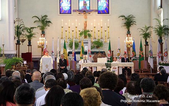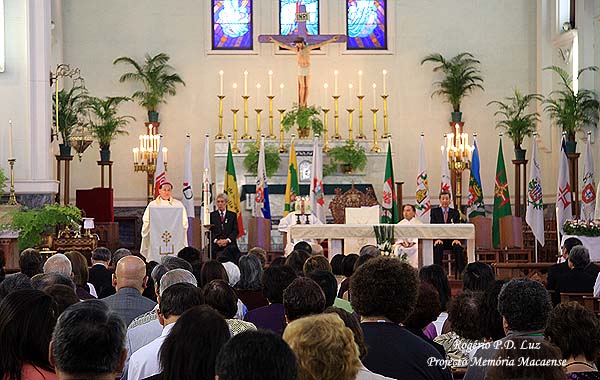 Depois da foto oficial do grupo, todos rumaram para a Sé Catedral, onde foi celebrada missa em homenagem a Nossa Senhora Padroeira da Comunidade Macaense. A igreja estava completamente lotada.