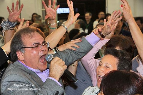 Talvez uma das melhores festas do Encontro, aquela que as pessoas se divertem mais, se juntam e se confraternizam melhor. Sem luxo, nem mesas, mas contato humano e música sem palco. O artista em contato com o povo. Sem falar no chá gordo que assusta pela fartura e variedade, além de … huumm, uma delícia. Tudo isto na Escola Infantil, ao lado do Jardim da Flora e o prédio da Apim. Desfilaram pelo espaço musical, o José Badaraco (Canadá) numa excelente apresentação solo, até a cantar música brasileira e do Roberto Carlos. O público vibrava e cantava junto. Depois veio o Charlie Santos que se apresentava pela 1a. Vez em Macau. Era para vir em 2007. O Charlie ou Canicha, seu alcunha/apelido, gosta deste contato com o público. Sentiu-se à vontade e cantou até, com o seu back. Era uma alegria só! Um repertório de músicas conhecidas dos velhos tempos, que todos cantam junto. O Charlie já me adiantava esta receita e acertou em cheio. Envolveu-se com o público e foi muito aplaudido. E, o público dançava!!!