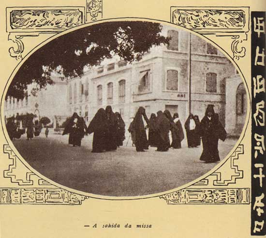 Interessante que no início de 1900 em Macau, as “nhonhas” (senhoras) vestiam o traje de “dó” em certas ocasiões, como a missa, tal como vemos na foto divulgada pela “Illustração Portugueza”, edição semanal do jornal O Século (Portugal) em 1908. Noutra foto, vemos uma senhora macaense em foto antiga de estúdio com o traje.