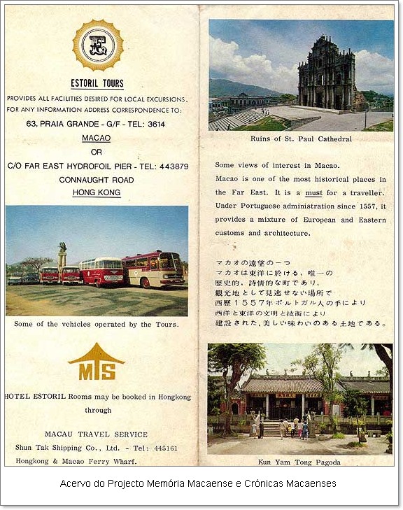 Em complemento à postagem anterior, também achei no meu acervo “de tudo quanto é coisa” trazido de Macau, um folheto (folder) de divulgação do Hotel Estoril.  Não sei como, mas acabou vindo na minha bagagem de emigrante. Para aquela época, certamente era um hotel de luxo.  Veja o ambiente do restaurante e depois veja as fotos da festa de casamento naquela postagem. Bons tempos! Belos tempos que não voltam mais, mas que vivem no nosso coração macaense.