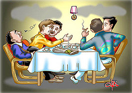 Na época, comentava com o Api que ia criar aquela página no site PMM para lembrar este famoso ponto de encontro da nossa malta, e ele sempre criativo, logo me mandou este desenho ou gravura. Diz ele que as pessoas que lá aparecem, lembra alguns antigos frequentadores. Na verdade o Café Ruby procurava fazer o trabalho que propriamente dito deveria ser feito através de um blog, como este. Seria espécie de um sítio para uma conversa entre amigos. Como recentemente decidi tentar dinamizar o Crónicas Macaenses, que andava assim meio paradão, vamos ver se ao longo do tempo vou conseguir dar um perfil característico para este blog. O portanto do texto abaixo do “logo”.