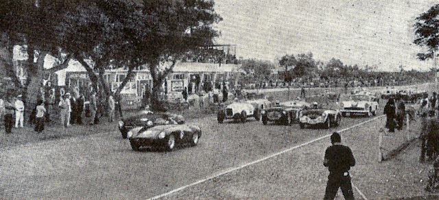 Grid/grelha de largada do GP de Macau de 1955, com a Ferrari 500 Mondial largando na 3ª posição, ao lado em 2º a Mercedes Benz 190SL de Doug Steane e na pole position, Robert Ritchie com a sua Austin Healey 100. Na 2ª fila, em 4º Neville Fullford no Triumph TR2 e 5º Ron Hardwick no Triumph TR2. Já no 2º GP foi abolida a largada do estilo Le Mans na qual os pilotos enfileirados correm para os seus carros, o que apresentava risco de acidentes.