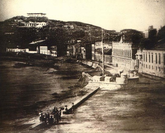 Tirei esta foto em 2007 que mostra a região onde fica a estátua de Jorge Álvares em Macau. Imagine que há 163 anos atrás, em 1844, lá existia um um pequeno forte – fortim – que nossos avós ou bisavós o viram, quando viviam naquela Macau muito pacata. O francês Jules Itier lá esteve na época e tirou uma série de fotos, que hoje fazem parte do acervo do Museu Francês de Fotografia.