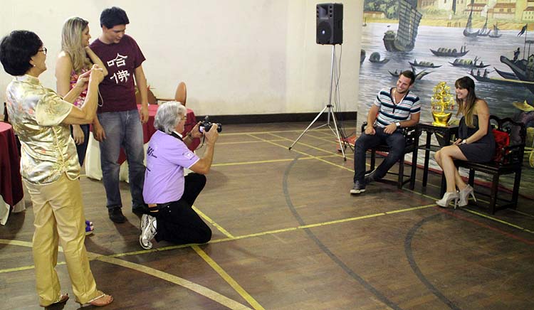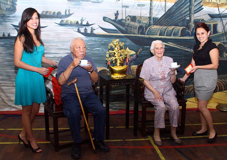 a tradicional cerimonia de chá e o lai si com a participação de belas jovens, netas do macaense Assis Fong