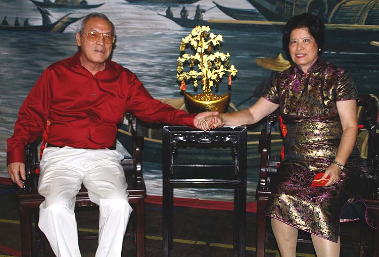 o presidente Gilberto Silva e esposa Henriqueta posam para foto em móveis chineses
