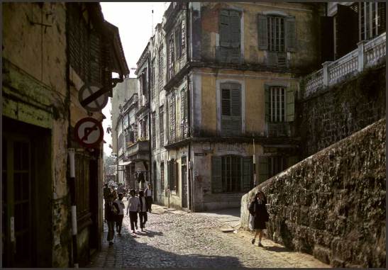 Esta ladeira ou rampa que dá acesso (subindo-a) para o Teatro Dom Pedro, a Igreja de Santo Agostinho e a Escola Comercial. Agora quem for descê-la, vai para a Igreja de São Lourenço e o Seminário de São José, um dos caminhos que eu fazia para ir à escola nos anos 60. Belos tempos. Agradeço o Karsten Peterson pela foto que tantas boas memórias me trazem do trajeto para ida/volta da escola. Interessante que, agora vendo essas casas bem deterioradas, na época, não impressionavamos com isso. Nem davamos importância! Hoje diriamos: “uau, que casas velhas e mal conservadas, caindo aos pedaços”. Essa na verdade era a Macau daqueles tempos. Não havia muita preocupação em restaurar casas, prédios, monumentos, Igrejas etc. Eram muito manchadas ou com a pintura mofada e paredes escurecidas. No entanto, essa era a Macau que gostavamos. Sentiamos bem. Era mais humana! Mesmo que Macau hoje impressione pela modernidade.