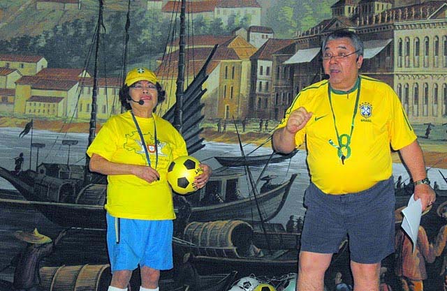 Mariazinha Carvalho e Armando Ritchie na peça do Teatro Maquista de São Paulo (Teatro em Patuá) de ‘Futebol’ em Julho de 2011 na Casa de Macau de São Paulo (fotografia de Rosa Cruz)