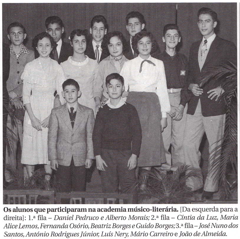 Num pequeno palco, improvisado sobre estrados numa sala de aulas, os alunos apresentaram uma interessante academia músico-literária, de que aqui se dá um pequeno relato, transcrito do “Notícias de Macau”, de 9 de Janeiro de 1953.