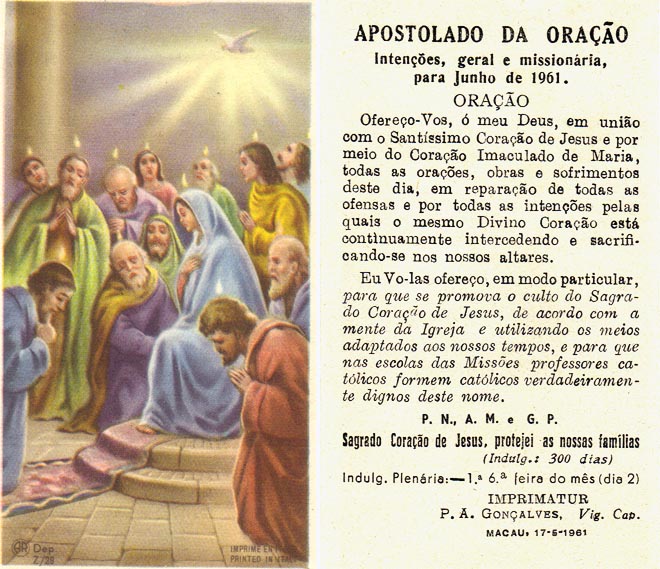 Em respeito à esta Sexta-Feira Santa, publico estampas religiosas dos tempos antigos de Macau pertencentes à minha mãe, e que costumavam ficar dentro dos seus livrinhos de orações. Espero que auxiliem nas suas orações, momentos de reflexão ou para matar as saudades da terra: