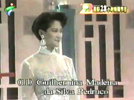 Guilhermina is the oldest sister of the family. She is 37 years old now and competed at Miss Chinese International 1989 and Miss World 1989 held in Hong Kong. 19 years old at that time, she finished as second runner up at Miss Chinese International 1989 and unfortunely was unplaced at Miss World 1989. She is considered to be the most successful Miss Macau at Miss Chinese International as she is the only winner to win an award at the international pageant.