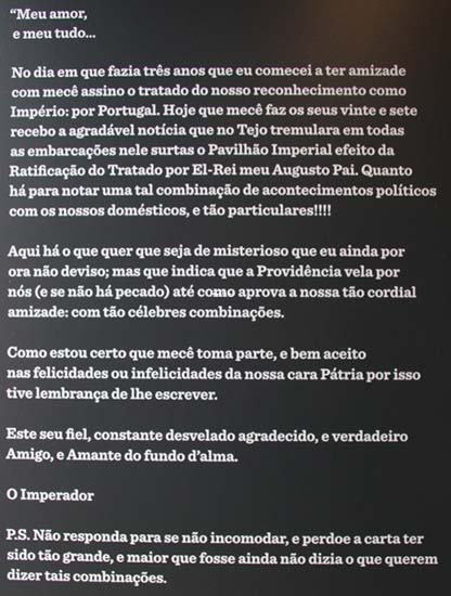 No andar superior, a sala que expõe as intimidades da Marquesa de Santos com Dom Pedro I e nas paredes parte do que foi a antiga pintura das paredes originais do Solar
