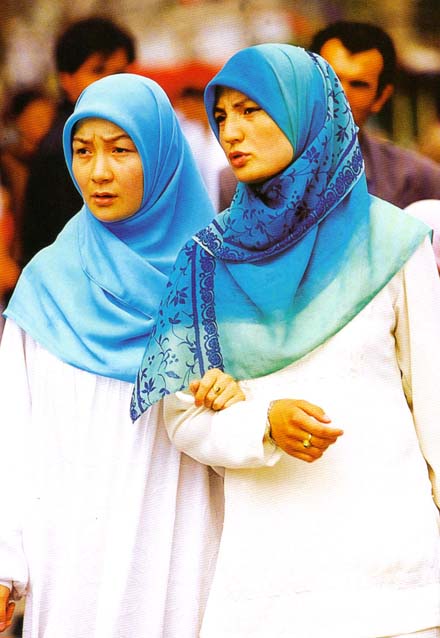 O branco é considerado uma cor sagrada pelos muçulmanos, tanto que uma lenda diz que Maomé, fundador do Islamismo, dizia “vocês devem usar o branco com frequência, pois o branco é mais santo e bonito”. Na China. Hui, Uygur, Kazak e outras 10 minorias étnicas são adeptos do Islã. Muçulmanos chineses, tanto homens como mulheres, usualmente vestem-se e cobrem-se de vestes de cor branca.