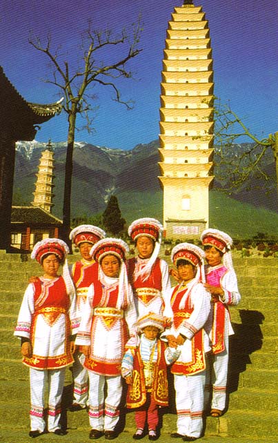A cor branca também se faz presente no vestuário do povo Bai que habita na região autônoma da nacionalidade (etnia) Dali Bai em Yunnan, região montanhosa no sudoeste da China. O branco para eles tem o significado de bons auspícios, cordialidade e piedade filial.