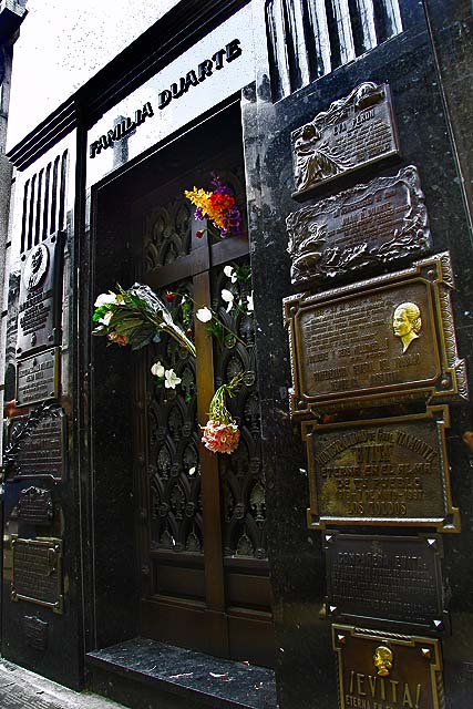 Mausoléu da Família Duarte onde estão enterrados os restos mortais de Evita Peron. Ela não foi enterrada com o seu marido Juan Peron que foi presidente da Argentina por 2 vezes, que se casou depois com Isabelita Peron.