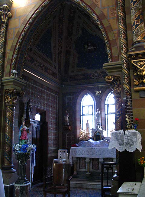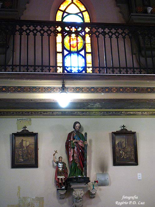 A Capela possui um corredor lateral no mezanino