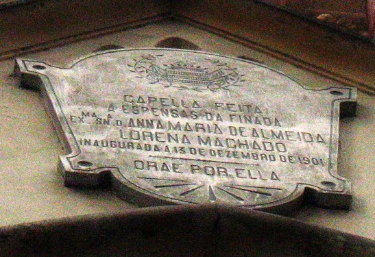 Capela feita a expensas de Anna Maria de Almeida Lorena Machado, inaugurada a 13/12/1901, durante a festa de Santa Luzia.