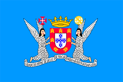 Esta é a original, Bandeira do Leal Senado, uma bandeira histórica que representava a cidade de Macau na época dos portugueses. Sua descrição: