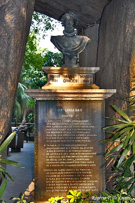 A falar de Camões, existe um jardim denominado Jardim Luís de Camões, que vou-lhes apresentar com as fotos de um ensaio fotográfico que fiz em 2007. É um lugar muito tranquilo, mais usufruído por gente da terceira idade e aposentados chineses, para jogar cartas ou xadrex, praticar ensaios musicais, se exercitar ora com aparelhos que o parque dispões ou em caminhadas, ou simplesmente um convívio. Diz a história que Camões lá começou a escrever seus versos dos Lusíadas. O texto a seguir foi copiado do site do antigo Leal Senado (Câmara Municipal) um dia antes da transição de Macau para a China em 20 de Dezembro de 1999. Fiz isso no sentimento extremo de tristeza pelo fim da era portuguesa de Macau: