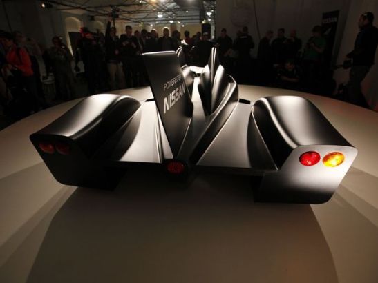 Nissan Delta Wing assemelha-se a um avião e as 2 rodas dianteira ficam bem juntas. É equipado com um um motor 4 cilindros 1,6 litro com turbocompressor e potência ao redor de 300 cavalos (foto: Jean Francois Monier AFP)