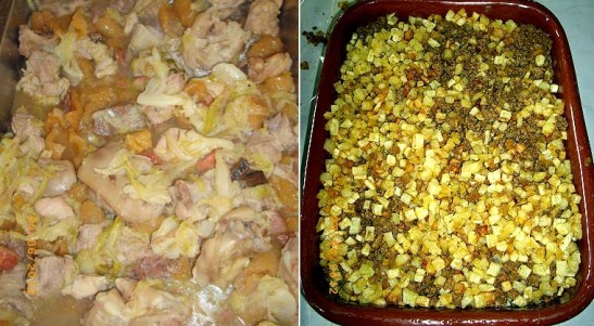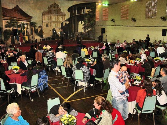 Como não poderia deixar de existir numa festa típicamente macaense, lá estava a gastronomia presente com o tacho (chau chau pele) como prato principal, complementado por um minchi com batatas fritas em cubinhos, além do carril de carne de vaca e batatas, entre outros pratos auxiliares. O público contando com cerca de 120 pessoas, ao anúncio de “o almoço está servido” no microfone, lá se enfileirou para se servir da comida macaense.