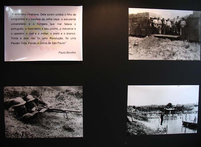 “9 de Julho de 1932. Explode em São Paulo uma revolta contra o presidente Getúlio Vargas. Tropas federais são enviadas para conter a rebelião. As forças paulistas lutam contra o exército durante três meses. O episódio fica conhecido como a Revolução Constitucionalista de 1932.”