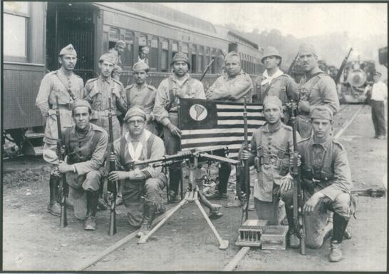Tropas Paulistas na Estação de Eleutério da Cia. Mogiana de Estradas de Ferro (fonte: Elias Vieira).