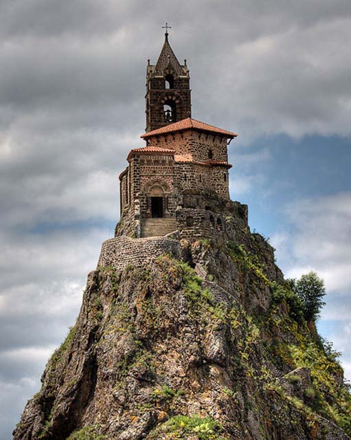 Foi construído no ano 962, num pico vulcânico no meio do vilarejo de Puy en Velay pelo Bispo Gothescalk após a sua peregrinação a Santiago de Compostella, Espanha. Em 1955 foram achadas relíquias debaixo do altar e que se encontravam lá desde a sua construção. (photo/foto de …)