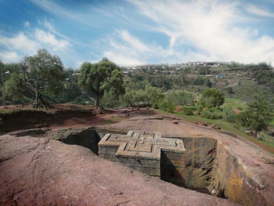 As igrejas escavadas na rocha de Lalibela constituem um Patrimônio Cultural da Humanidade situado na Etiópia, a 640 km ao norte da capital, Adis Abeba, e a 1.500 m de altitude.