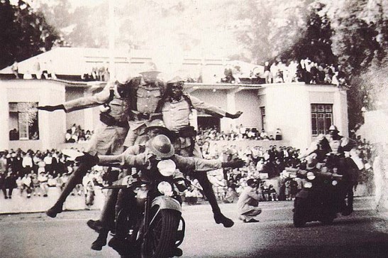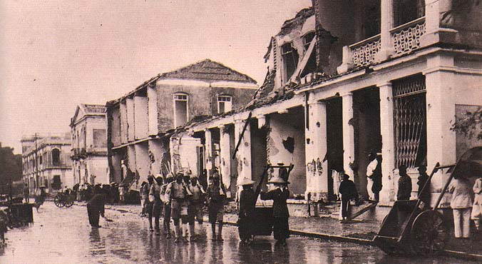 Soldados africanos patrulham a cidade após a explosão do paiol da pólvora em 1931