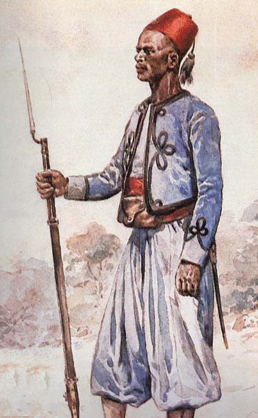 Soldado natural de África destacado em Macau. Aguarela/aquarela de Ribeiro Artur in A.H.M.