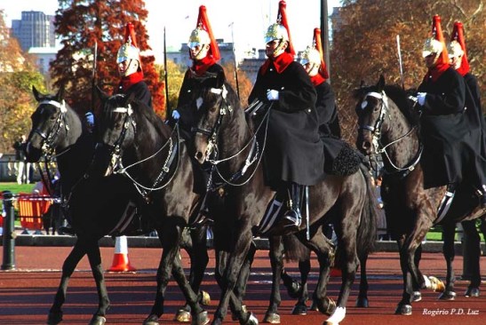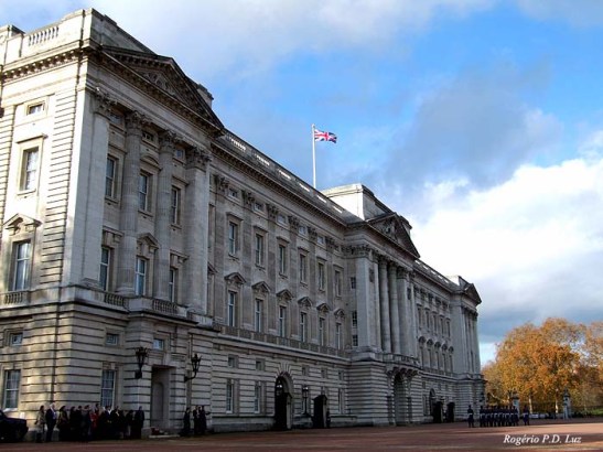 O Palácio de Buckingham é a residência oficial da Rainha Elizabeth que apenas o visita rotineiramente pois ela reside no Palácio de Windson. Na 2ª Guerra foi bombardeado sete vezes pelos alemães, que não conseguiram destruí-lo. A troca da guarda ocorre em dias alternados no Inverno, no fim da manhã. É um lindo espetáculo muito disputado pelos turistas por um melhor posicionamento para ver e fotografar. Para mim foi difícil pois chegamos em cima da hora após percorrer a pé do hotel em Suxxex Gardens contornando o enorme Hyde Park. Parecia perto pelo mapa mas não era tanto assim.