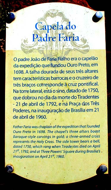 A Capela de Nossa Senhora do Rosário dos Brancos, também conhecida com a Capela do Padre Faria por ter rezado a primeira missa na região, é uma das mais antigas e ricas capelas de Ouro Preto, construída por volta de 1710. A sua simples fachada contrasta com o seu rico interior, decorado em 1740 por irmandades dos brancos poderosos. O nome da capela é uma referência ao padre que rezou a primeira missa na região.