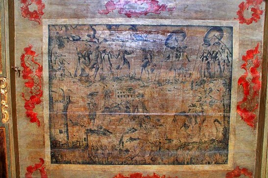 Enquanto aguardávamos a sua abertura na praça defronte à igreja, em conversa com dois moradores, mesmo sem contar da minha naturalidade de Macau (China), contavam que na sua construção houve também certa influência da minha terra em alguns detalhes de acabamento e de pintura, tal como a Capela de Padre Faria que tinhamos acabado de visitar.  Pelo que vi depois, poderiam ser os tons vermelhos chineses e duas pinturas: uma atribuída a cenário português de Macau e outra de detalhes chineses. Não encontrei nenhuma literatura na internet que falasse disso, assim, não poderia elucidar esta minha dúvida.