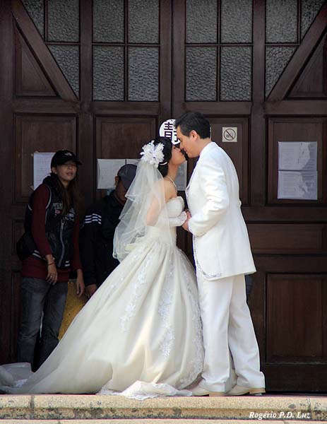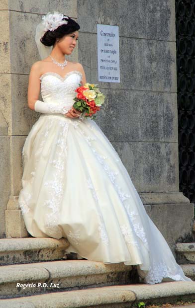 Noivos em pose para foto na entrada da Ermida. Na saída da colina, pude perceber que havia mais três carros com noivos à espera da sua vez para fotos.