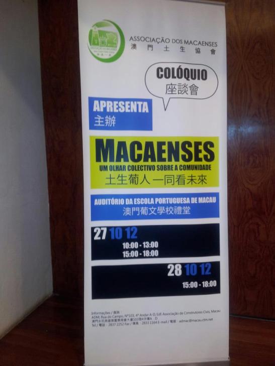 No fim da semana passada, 27 e 28 de Outubro de 2012, realizou-se em Macau um Colóquio sobre a Comunidade Macaense com a proposta definida pelo seu promotor Miguel de Senna Fernandes e a Associação dos Macaenses que preside: “refletir, conversar, encontrar soluções … com temas que giraram em torno de identidade, política e economia”.