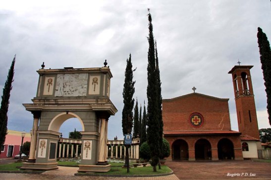 Grandes arcos, pilares e monumentos. As características da arquitetura romana podem ser apreciadas na cidade, que fica a 500 quilômetros da capital paulista. No local, quem não é italiano, é descendente.