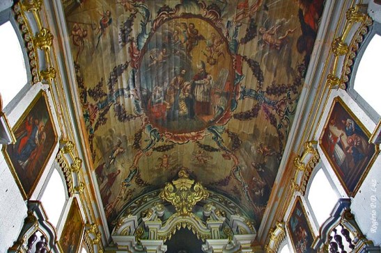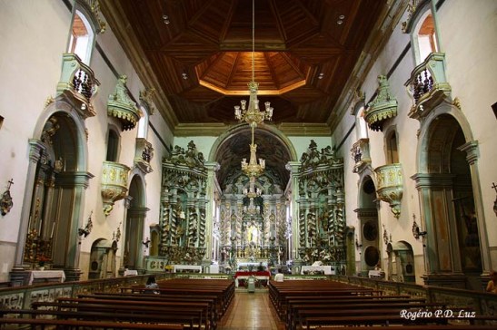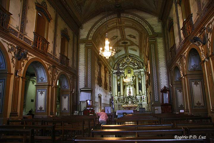 as pinturas dos tetos da nave e capela-mor foram realizados por José Patrício da Silva Manso (c.1753-1801), que na época tinha como ajudante o frei Jesuíno do Monte Carmelo