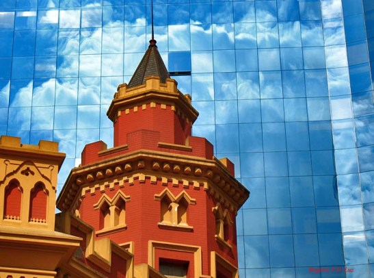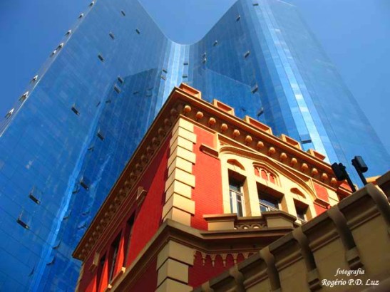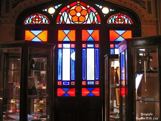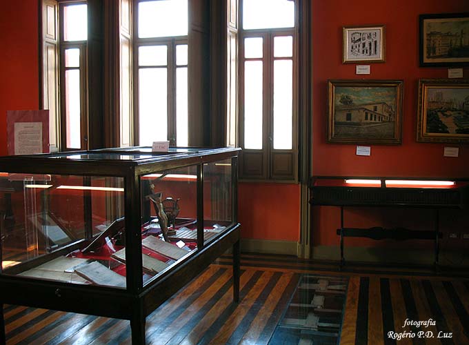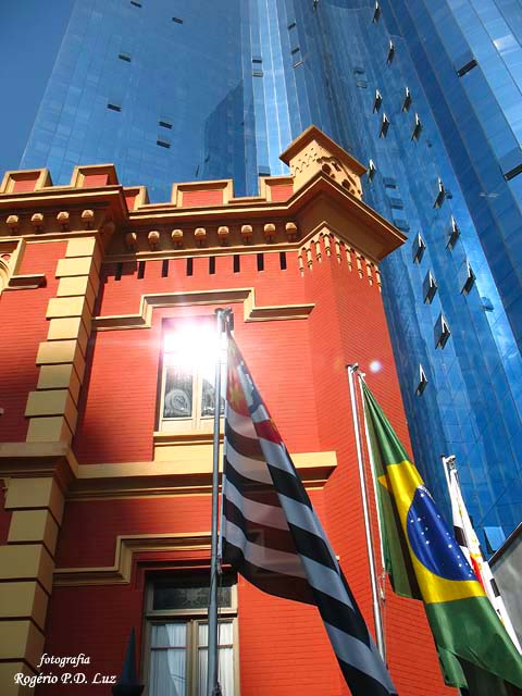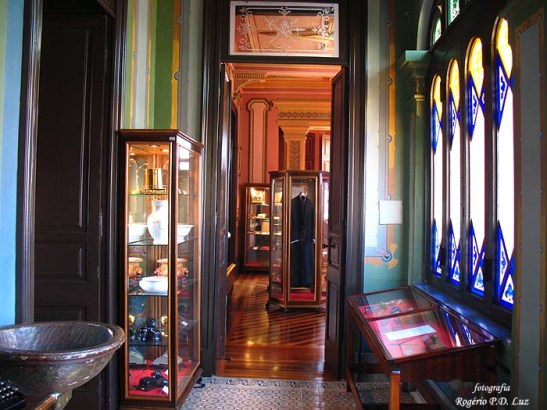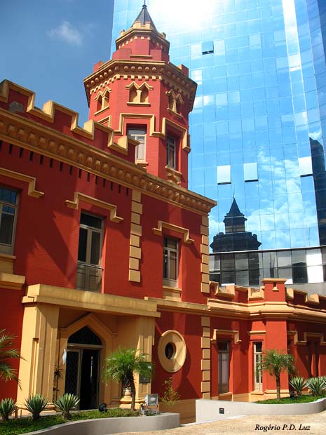 Quando percebi que aquele casarão, cuja construção parecia mesmo um mini-castelo com algum estilo árabe era um museu, não hesitei em fazer uma visita, ainda mais que estava com uma máquina fotográfica compacta Canon A-620, já meio antiga mas ainda funcionando. Uma surpresa agradável ver um espaço tão bem organizado, limpo e bem conservado, ao lado de um edifício moderno todo envidraçado, que oferecia um belo contraste do moderno e o antigo. Contribuía para uma boa fotografia, o céu azul com algumas nuvens que eram refletidas pelos vidros do prédio.
