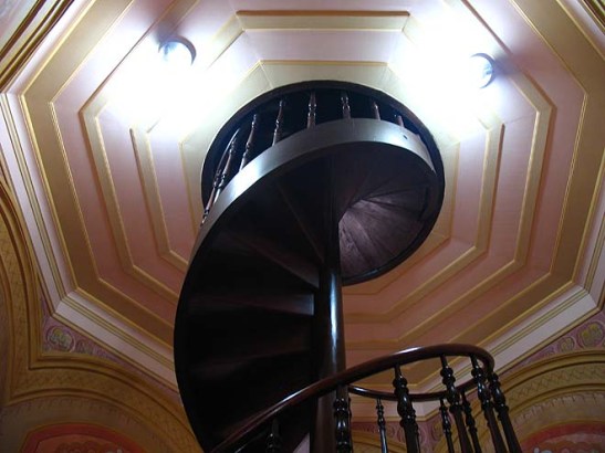 Da sala principal segue-se para a escada, em uma única pilastra, que dá acesso ao andar superior e a um mirante. De lá, ainda é possível avistar a Catedral da Sé e a Várzea do Carmo, denunciando a localização privilegiada. Certos detalhes permitem imaginar que o escritório de Ramos de Azevedo teve alguma participação na obra. (http://www.gw3mn.com.br)