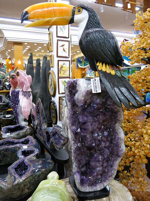 Qual a minha surpresa, ao entrar na loja, considerada uma das maiores do gênero na América Latina, foi ver o seu tamanho e enorme quantidade, além de grande variedade de produtos de artesanato e de pedras preciosas brasileiras, sem contar com uma ampla sala de chocolates caseiros. Troquei o dinheiro e fiquei de voltar para uma visita detalhada.