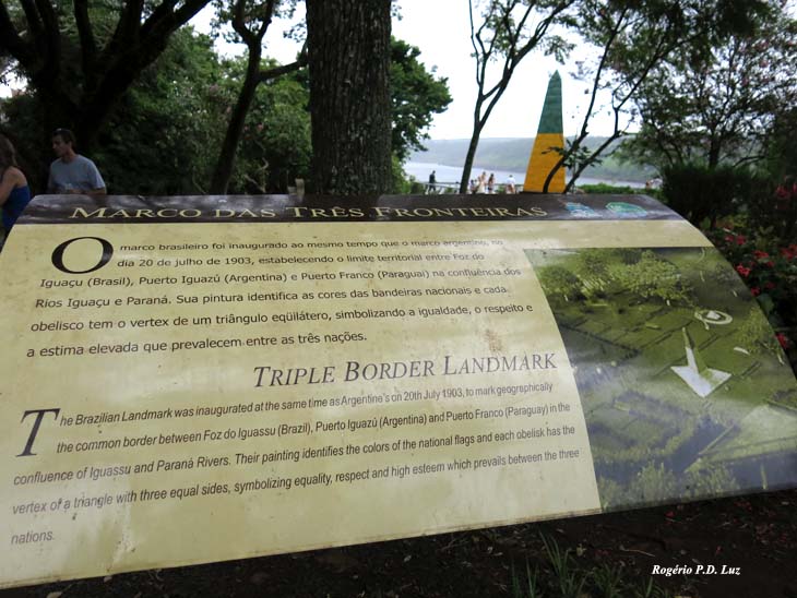 Cada País tem o seu marco com as cores nacionais, e os três formam um triângulo equilátero. De acordo com o site do Parque Nacional de Iguaçu: <o marco brasileiro foi inaugurado em 20 de julho de 1903, juntamente com o marco argentino, localizado na cidade de Puerto Iguaçu e pelo marco paraguaio, que fica em Presidente Franco. No mesmo local encontra-se a pedra fundamental “Memorial Cabeza de Vaca”, em homenagem ao descobridor das Cataratas, Álvar Núñez Cabeza de Vaca, que foi o primeiro europeu a conhecer as cataratas em 1542.>