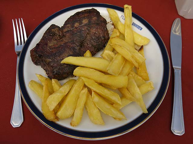 É uma tradição. Ir a Buenos Aires (BA) e não comer um bife de chorizo (foto abaixo), o passeio fica incompleto. Desta vez, degustei-o no bar-restaurante Florida Garden “la identidad de una esquina” como se auto-intitula. Fica na esquina da Calle (rua) Florida com a Paraguai. O ambiente respira o antigo de BA com aqueles senhores distintos e um garçom muito simpático no andar superior.