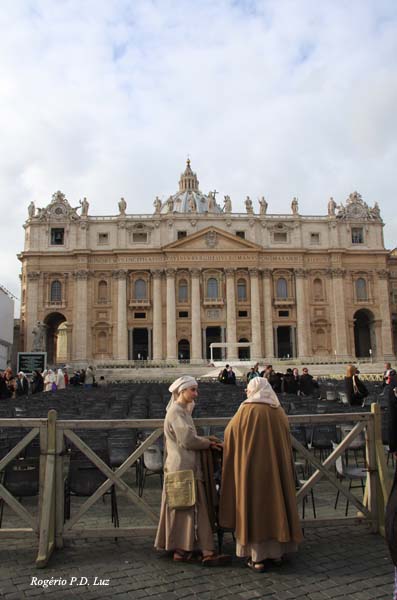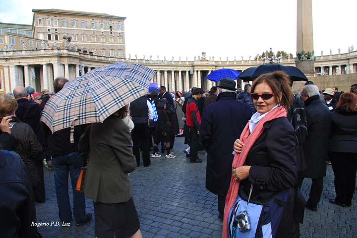 Em novembro de 2010, na nossa viagem a Macau para o Encontro das Comunidades Macaenses, fizemos uma parada em Roma por 5 dias. Foi como realizar um sonho. E como não poderia deixar de ser, e por sorte, pudemos assistir à saudação do Papa Bento XVI da habitual janela da sede do Vaticano. Foi pura emoção. Inacreditável !!! A praça estava cheia de gente de todas origens. Eis alguns registros: