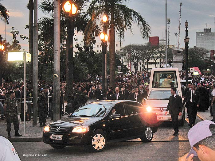 As fotos são da visita do Papa Bento XVI a São Paulo em Maio de 2007. Após pernoitar no Mosteiro de São Bento, no centro, onde a muito custo, pelo volume de gente e o espaço, conseguimos ver a saudação do Papa de uma janela. No dia seguinte, no fim de tarde, rumou para a Catedral da Sé, também no centro velho, onde no percurso era saudado por imensa multidão. Fotos memoráveis que ganham importância pelo momento histórico vivido nesta data de 28 de fevereiro de 2013, seu último dia como Papa. Uma página da história que levou 598 anos para ser escrita novamente.