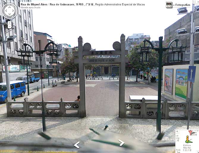 Na minha pesquisa, as 5 ruas comerciais do bairro San Kio são, segundo o IACM, a Rua da Emenda, a Rua do Lu Cao, a Rua do Rebanho, a Rua de Tomé Pires e a Rua de Brás da Rosa. Como a única escola católica desse bairro é a Escola da Sagrada Família, na esquina da Rua da Emenda com a Rua do Lu Cao, torna-se este um possível local desse teatro.