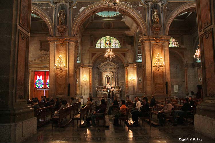 A sua imponência não é só na parte externa mas também por dentro. Na ocasião, a igreja estava sendo restaurada, o que acredito que as obras já estejam bem avançadas ou talvez concluídas.  Embora não tenha tanto ouro como as igrejas de Ouro Preto, pode-se observar seus arcos enormes, esculturas tanto em mármore como em madeira, além de lindas pinturas, num estilo que lembra bem as belas igrejas de Roma.