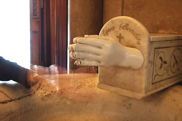 O altar-mor momento em que se rezava uma missa. Construído em Munique em 1912, tem 3 metros de largura e é todo feito de prata.