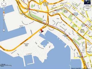 12- O «Fat Shan» tentou chegar a Ma Wan (A), mas largou âncora em (B) cuja corrente se partiu e foi arrastado 8km até (C) onde se virou.