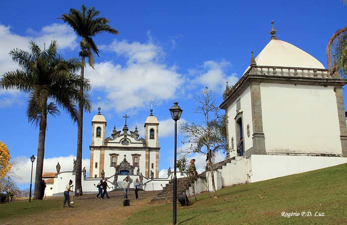 O sacro caminho desenrola-se em ziguezague, subindo por uma ladeira simbólica na qual organizavam-se procissões de penitência para expiar as culpas da sociedade opulenta do final do século XVIII neste importante centro minerário do Novo Mundo